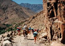 6. Tag Tifni – Chamharouch – Schutzhütte Neltner Nach dem Pass Tizi-n-Tagtharat langer Abstieg auf einem Maultierpfad zum Marabout von Chamharouch, dann gleichmäßiger Aufstieg zur Schutzhütte Neltner. Biwak/VP auf 3207m - 6,5 Stunden Marsch – Aufstieg 1300m, Abstieg 1200m